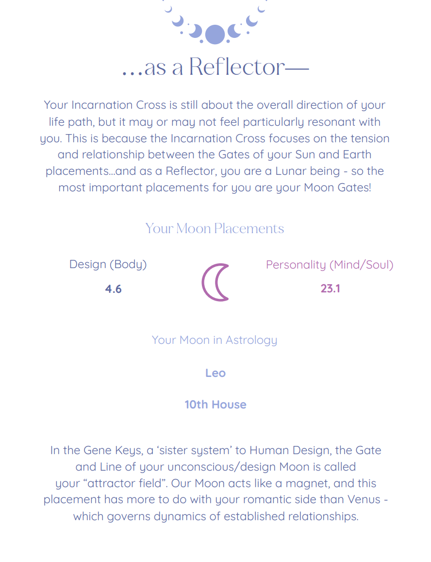 If you're looking for a reframe of "the typical info out there" - get the Full Chart Report. It's the best choice if you've been learning about your Design for a while already, or if you're ready to receive a new take on nuanced info that you can refer back to often.