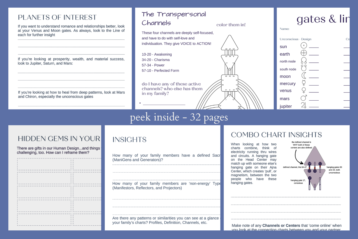Sometimes we learn best with colored pens and note-taking - so this is the ideal tool to make sense of your family's Human Design charts in a creative way.