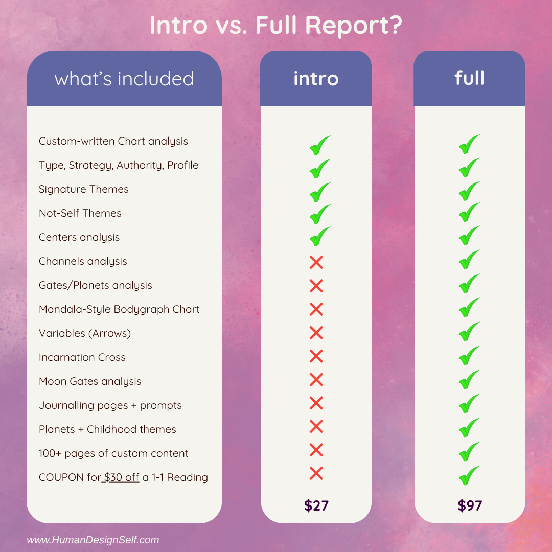 Full Chart Reports also include a 97$ coupon for a live reading, so you can break up the cost into two parts.