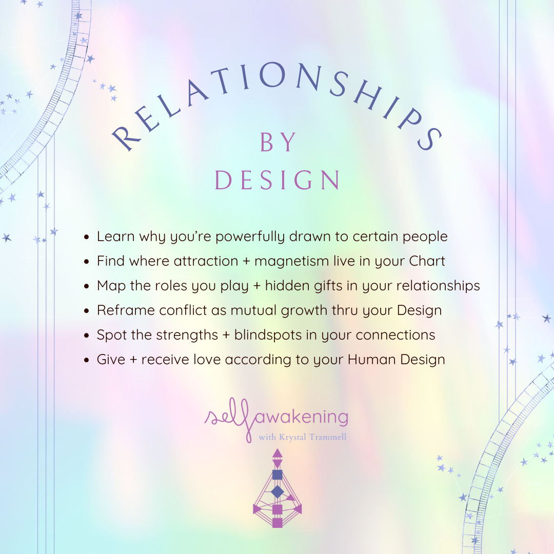 Join me for a chat about relationships in Human Design! We'll look at your "attraction Gate" and how our energy needs express thru our relationships. We'll explore common relationship themes and pitfalls by Type and Center, how attraction vs. friendship is expressed in our charts, and key challenges based on our Design. Finally, we'll explore how two charts combine into a Connection Chart with its own unique energy.